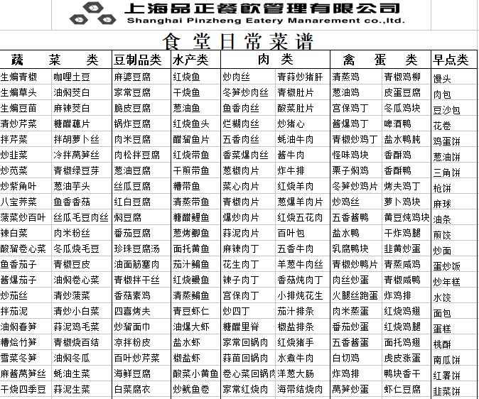 食堂菜单参考1